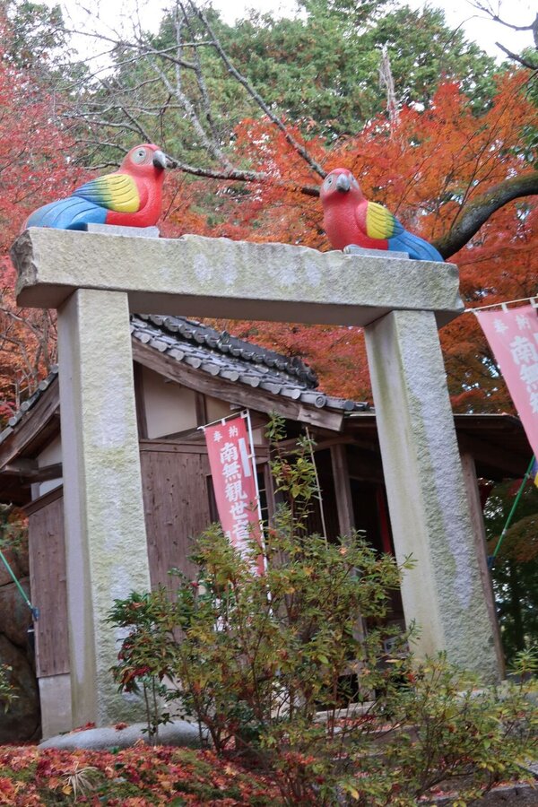 苗秀寺(みょうしゅうじ)は、亀岡市の湯の花温泉の近くにある曹洞宗の寺院。紅葉のシーズンは紅いトンネルが美しい穴場的な名所である。安土桃山時代に織田信長の命による明智光秀の丹波平定の兵火により寺伝などの資料は焼失したが、格式の感じられる寺院で境内には色々とユニークな造形物が点在している(写真は5枚)。